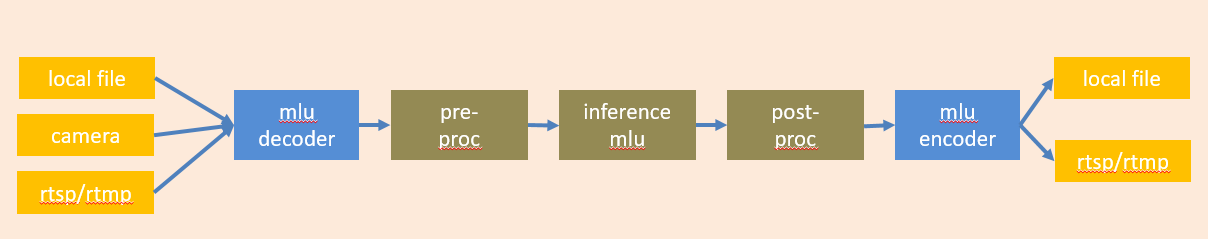 基于FFMpeg-MLU的转码方案主要是将CNCodec SDK集成到原生开源的FFMpeg中,基于原生FFMpeg丰富的生态及便捷的使用接口,但是底层基于MLU硬件实现。这里主要介绍FFMpeg-MLU转码方案。